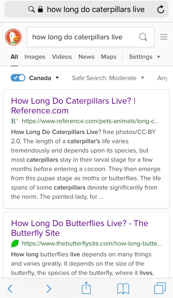 Maybe I’ll get chrysaliseseses instead of caterpillars. That would be a better scenario than a box of dead caterpillars at least.
