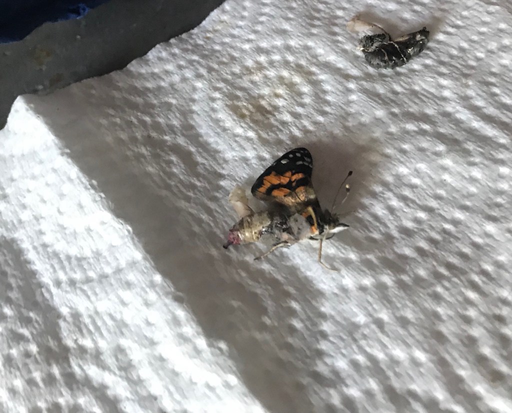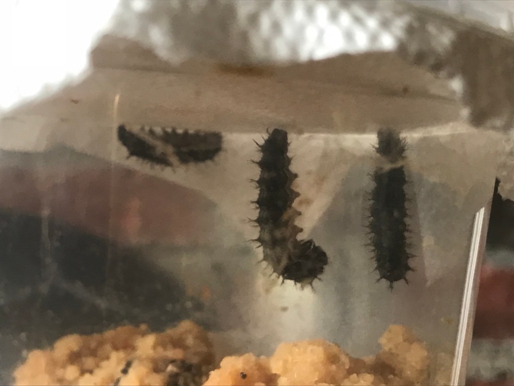 The first two butterflies are coming out! They’re from the chrysalises on the ground.