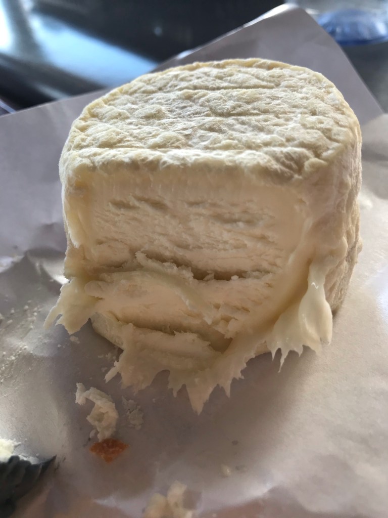 Next, we tried “Jac le chevrier,” another goat cheese. The inside was similar to the Grey Owl, but it had a Brie-like rind. After I gave my son a slice, I had to stop him from grabbing the whole thing and eating it like a cupcake.