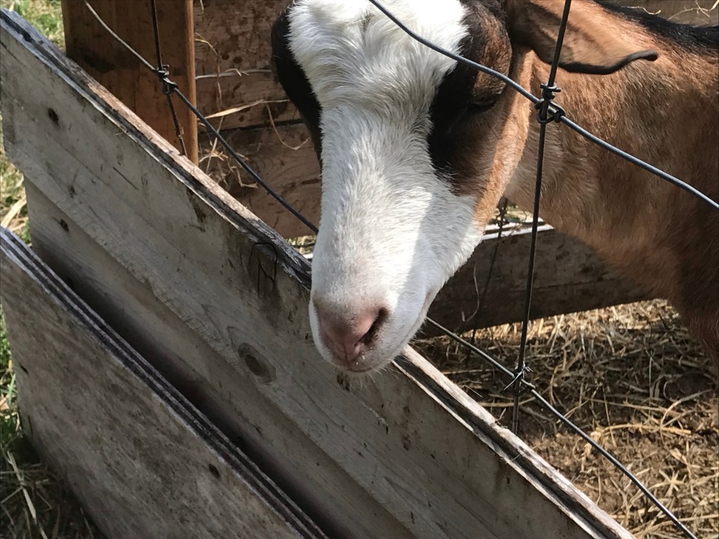 After we made our selections, we enjoyed the lovely backyard where we spent some time petting two very friendly goats.