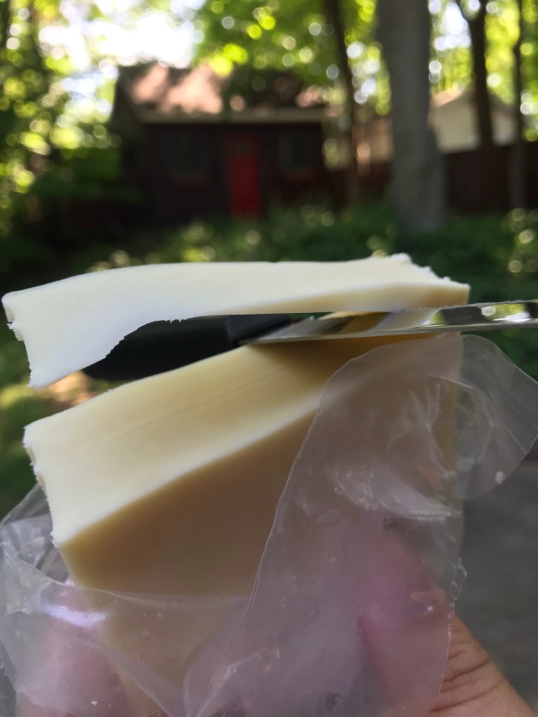 The cheese I got was a mild cheddar. This kind of cheddar is available in a lot of places in Quebec. It kind of tastes like a block of cheese curds. When my family in Ontario says that they want Quebec cheese, this is the kind that they’re talking about. The Laiterie Charlevoix cheddar had maybe a slightly stronger taste than other cheddars, but not really. It was more or less what I was expecting and I enjoyed it.