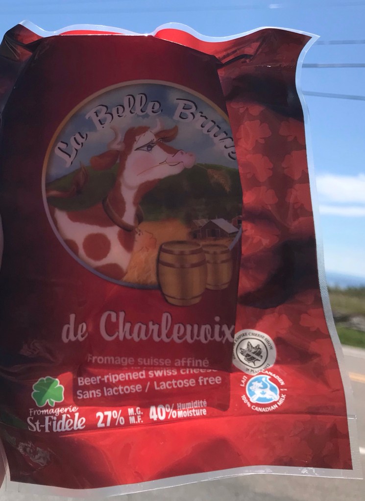 Fromagerie St-Fidèle is known for their Swiss cheese. I’m not normally a fan of Swiss cheese. If you have been following along so far, you are probably surprised that there is a type of cheese that I don’t like. I find that it often has a waxy taste, but I decided that I should try it because it is their specialty. I went with La Belle Brune de Charlevoix, a beer-ripened lactose-free cheese, and I liked it! There was no waxy taste. It actually kind of had a hint of that cheddar that my family likes so much.