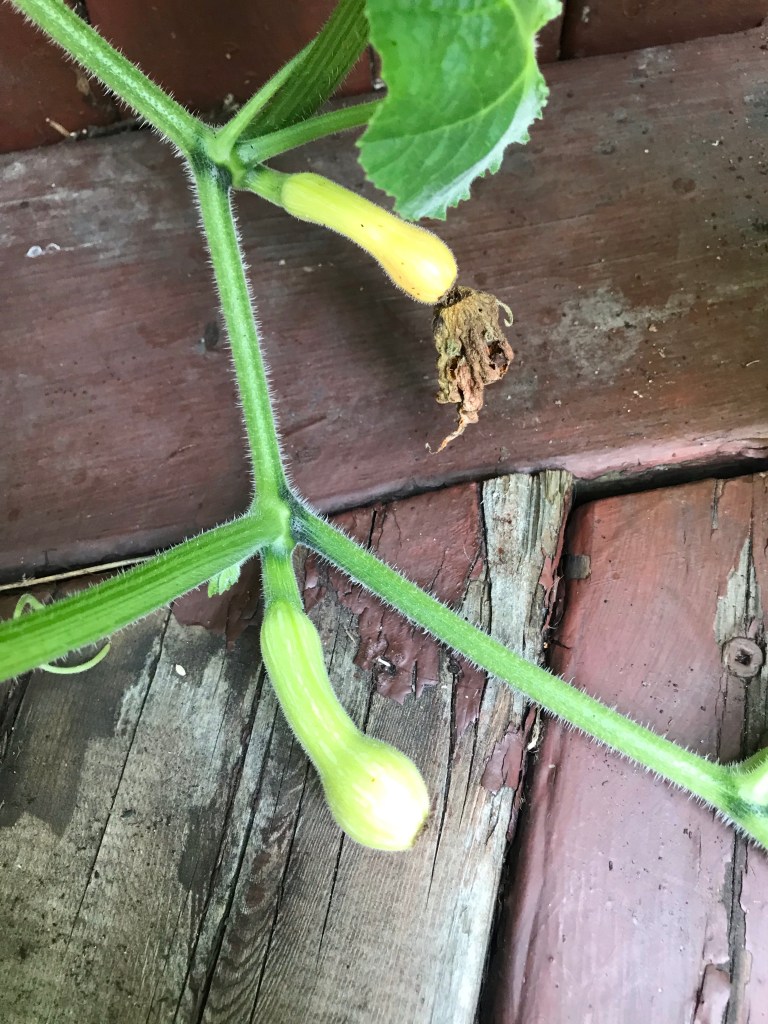 This is also the farthest I’ve ever gotten when growing squash and it is very exciting. I’ve had lots of big, beautiful, orangeish-yellow flowers, and then nothing. On the advice of several gardening books I have even used a paintbrush to help with pollination but it still did not work. I meant to try that again this year, but I didn’t get around to it yet, and look at what happened! Sometimes all you have to do is nothing.